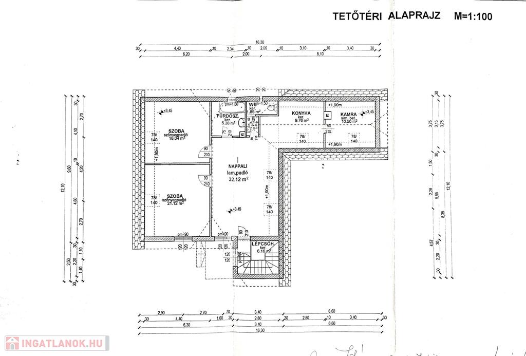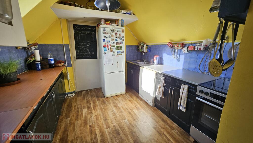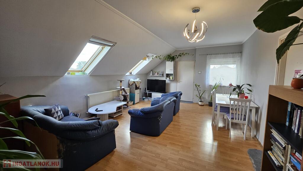 tetőtér 85 m2: előszoba, 2 szoba, nappali, fürdőszoba, WC, konyha