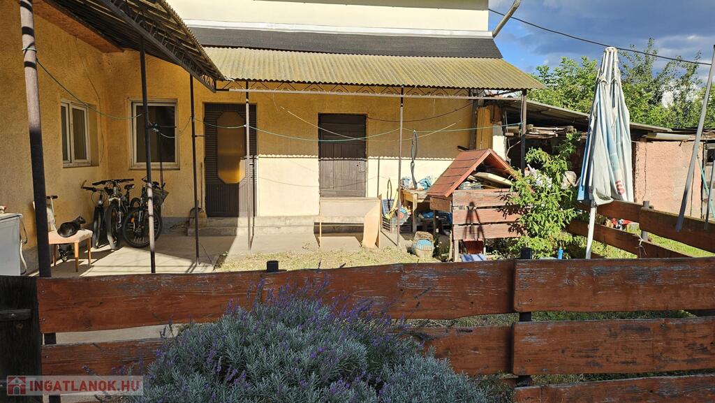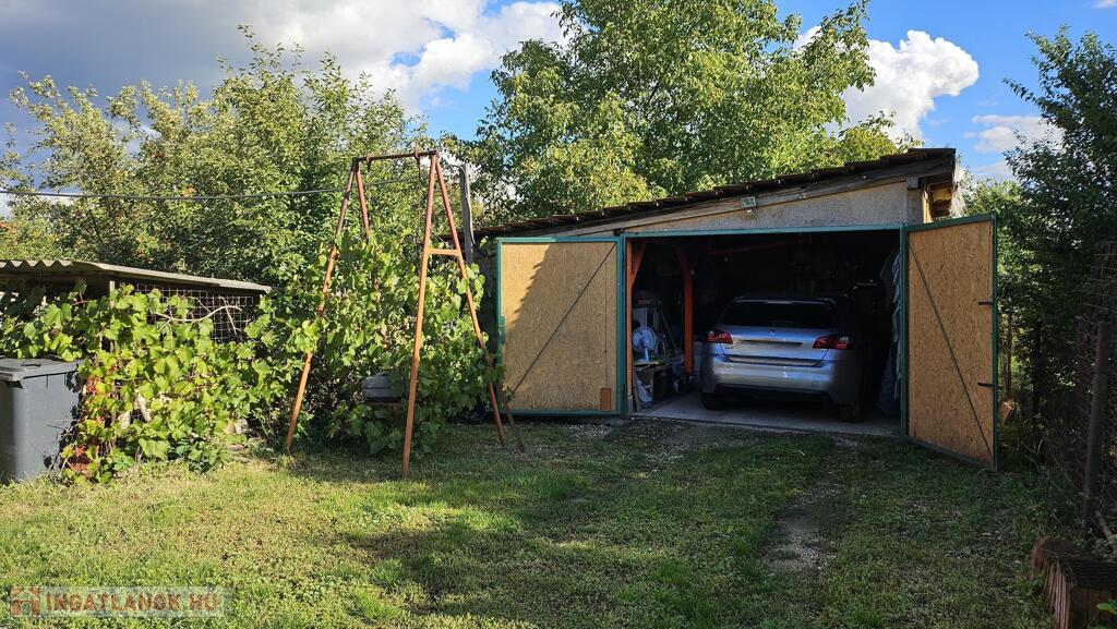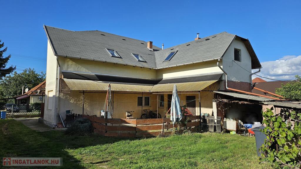 Nyékládházán, kertvárosi környéken, fsz.+ tetőtér szintmegosztású, D-Ny.-i tájolású, téglából épült, műanyag