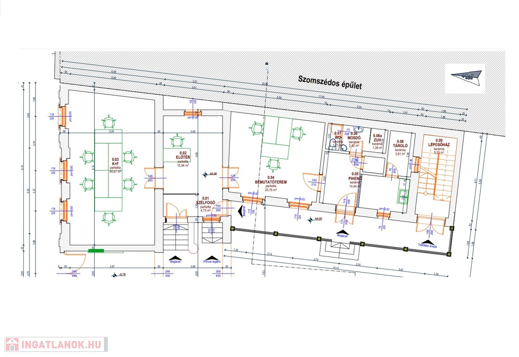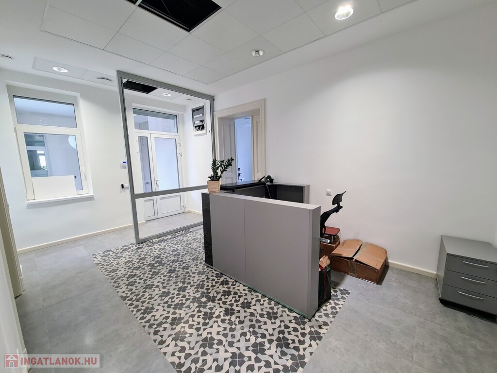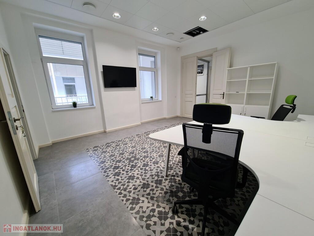 Miskolc belvárosában, a Petőfi utcában, patinás, műszakilag és esztétikalag is frissen felújított, hőszigetelt, alacsony rezsijű irodaházban, 7 helyiségből álló összesen 114 nm-es iroda, konyhával, mosdóval, kiadó.